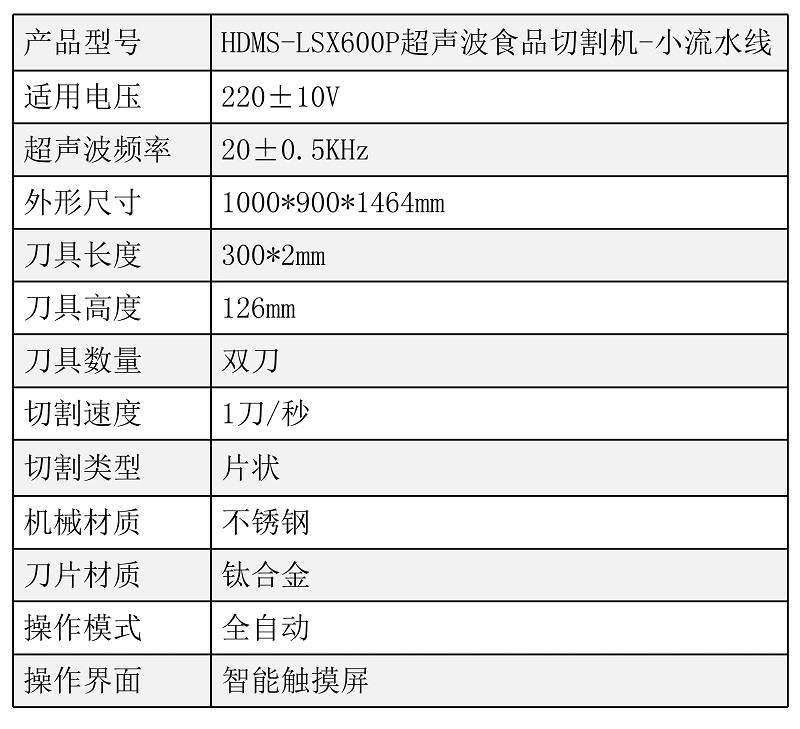 該設(shè)備配備單把超聲波刀片,可切圓形(只限一個(gè)圓蛋糕),也可切方形