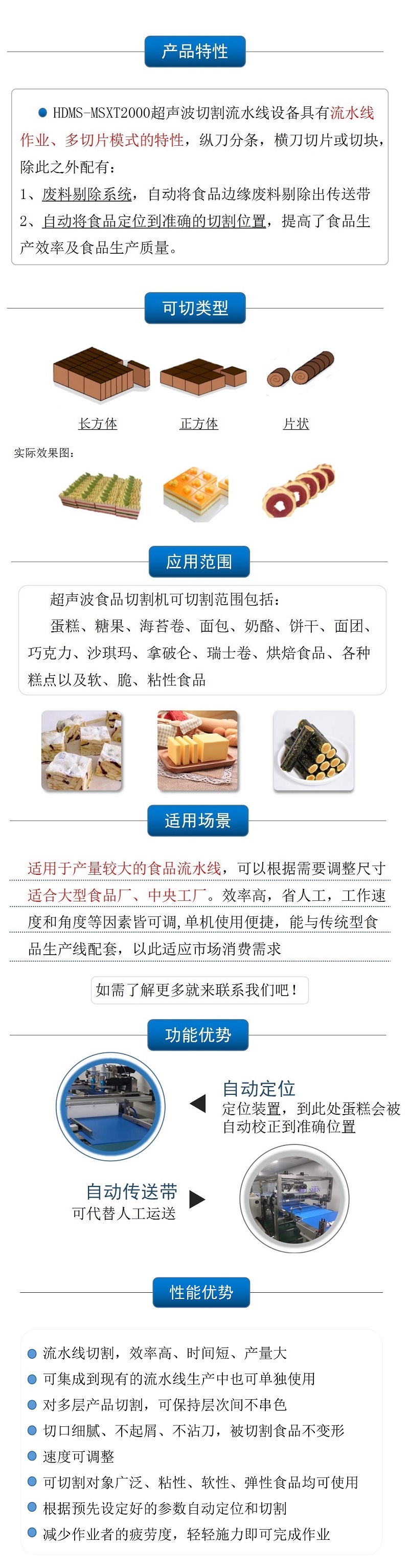 該設(shè)備配備雙把超聲波刀片,既可切方蛋糕,也可同時(shí)切兩個(gè)圓蛋糕,還具有自動(dòng)上水洗刀、安全光柵的人性化功能,效率高,更方便 |